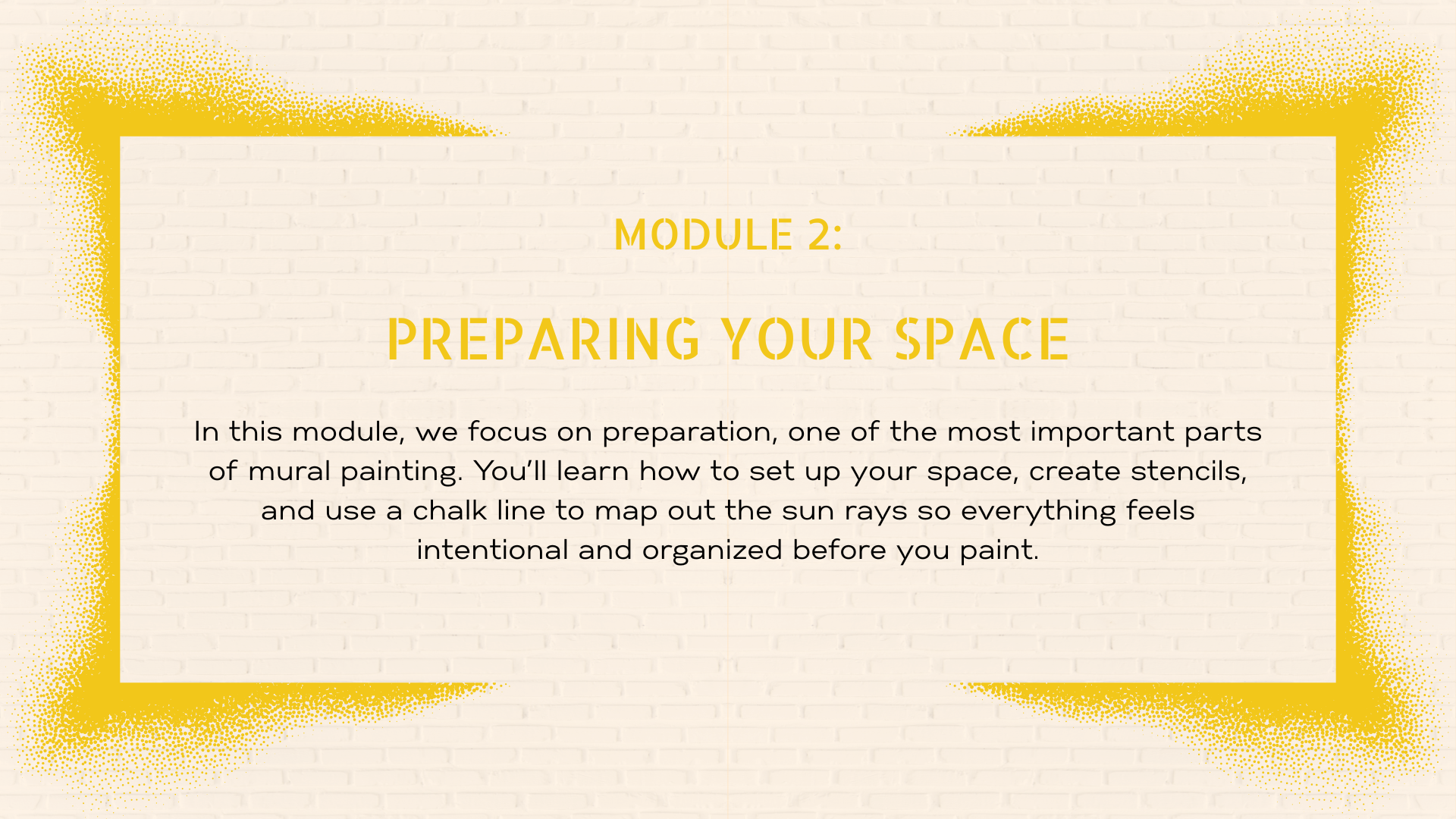 I designed Mural Painting Basics: Create a Sunburst Mural for aspiring mural painters of all levels, from first-timers to those who want a clear, repeatable approach.